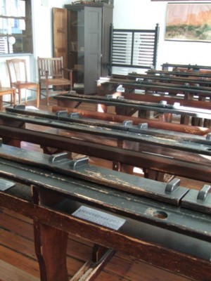 Aber so sah die Klasse nicht mehr aus (Vertiefung für das Tintenfass)?
