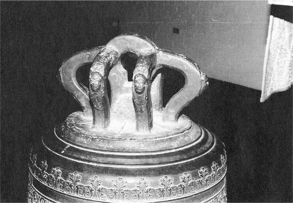 Die sog. "Krone" ist wichtig für die Anbringung der Glocke. Mit Hilfe der "Krone" wird die Glocke an einem Holzjoch befestigt. So wird es möglich, daß die Glocke