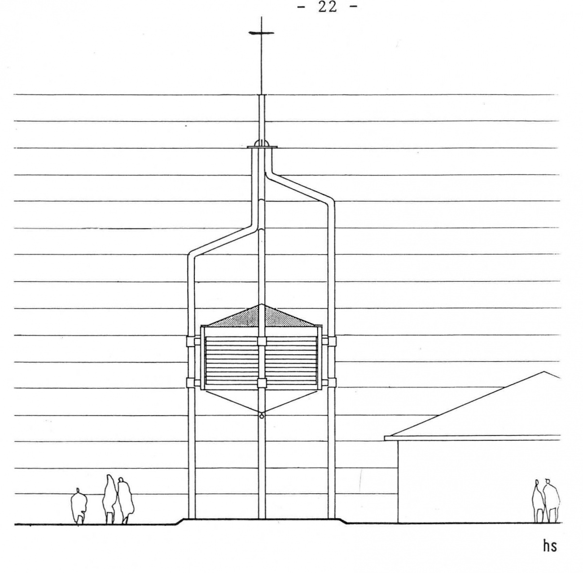 hier die Details der Glocke und eine Skizze des Turms. Da ich selbst noch nicht vor Ort war, habe ich keine Fotografie des fertigen Glockenstuhls.
