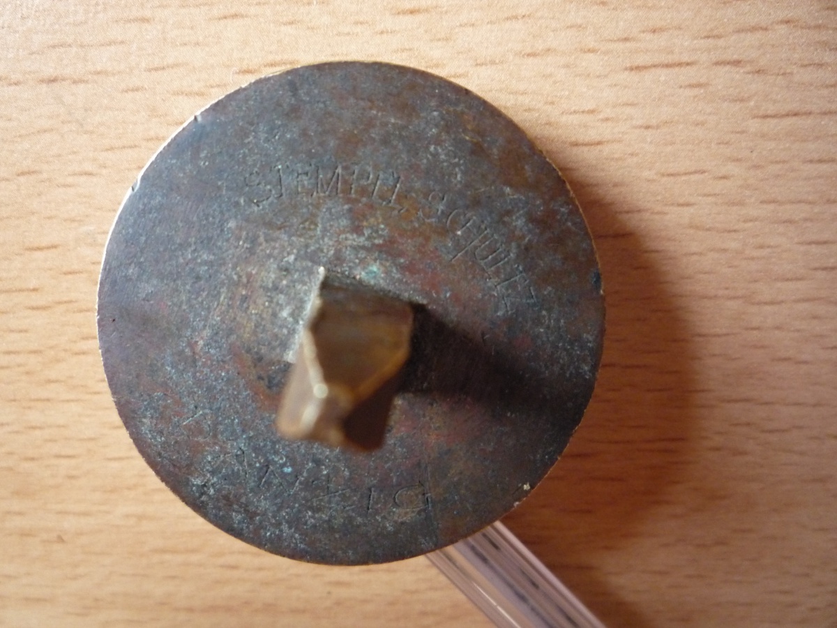 Die Rückseite, wo der Hersteller "Stempel Schultz " aus Danzig sich verewigte. Genau genommen ja ein Staatssiegel !!Anhang 20558