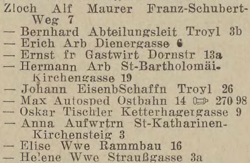 Im Danziger Einwohnerbuch 1942 finden sich folgende Zloch-Haushaltsvorstände: