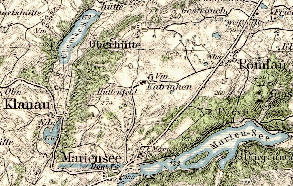 die höchste Erhebung in der Freien Stadt Danzig war ein Berg/Hügel südlich vom Glamke See bei Hüttenfeld: 274 m.