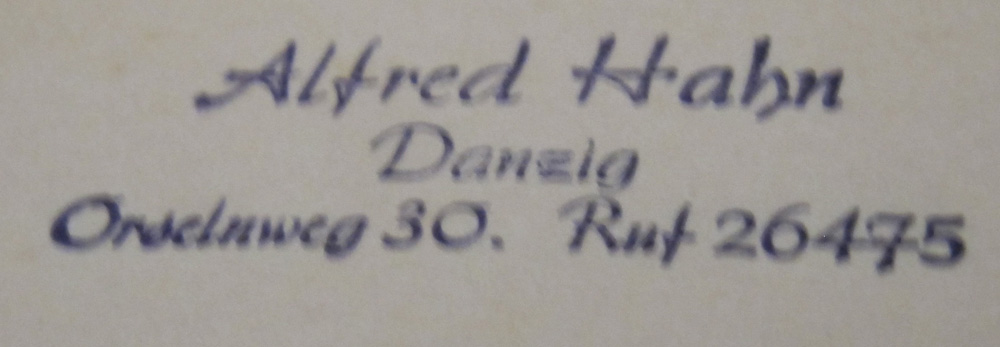 Piotr schickte mir dieses Foto vor etwa vier Wochen (wissend, dass ich in meiner eigenen Familiengeschichte ganz viel auch dank des Danzig-Forums recherchieren konnte) und fragte mich, ob ich etwas über diesen Alfred Hahn herausbekommen könnte. Ich weiß inzwischen, dass er Pianist war und wohl 1947 in Magdeburg verstorben ist. Ich konnte Piotr dann noch mit den Eigentumsverhätnissen über »seine« Nummer 5 aufkären. Familie Barth, vermutlich nach Ende des Krieges nach Salzgitter verzogen (Richard Barth ist, soweit ich weiß, noch 1944 in Danzig verstorben).