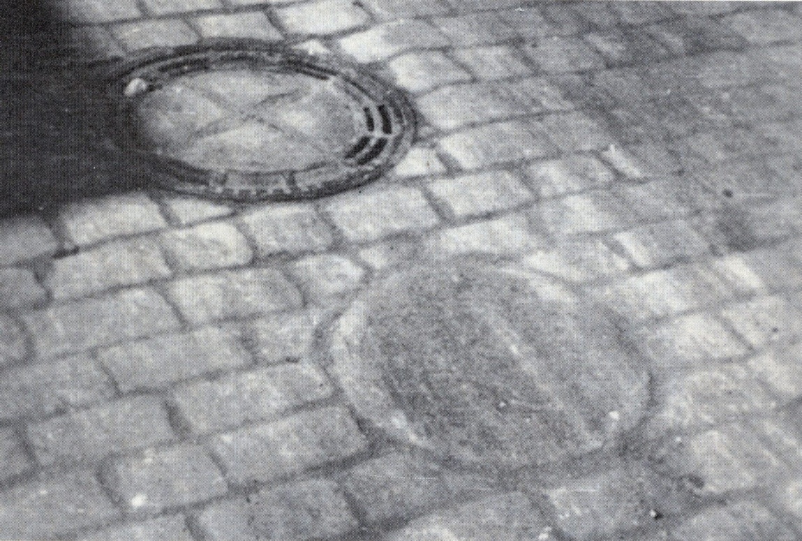 "Straßenpflaster in der Heiligen-Geist-Gasse. Neben „di Trumm“ noch ein runder Stein mit einer besonderen