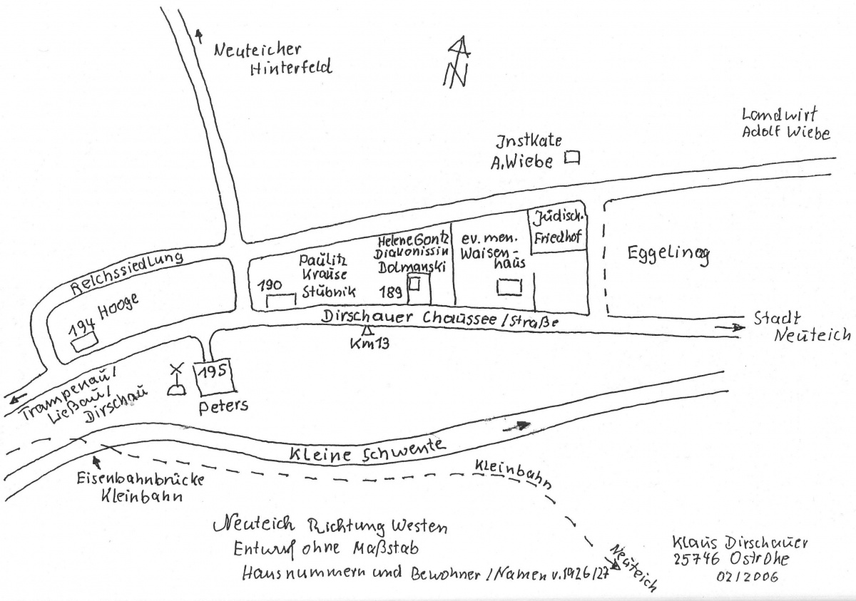 Möglicherweise hilft ja die nachstehende Lageskizze des verstorbenen Klaus Dirschauer, um bei einem Vor-Ort-Besuch die Adresse Dirschauer Chaussee 186c zu finden.