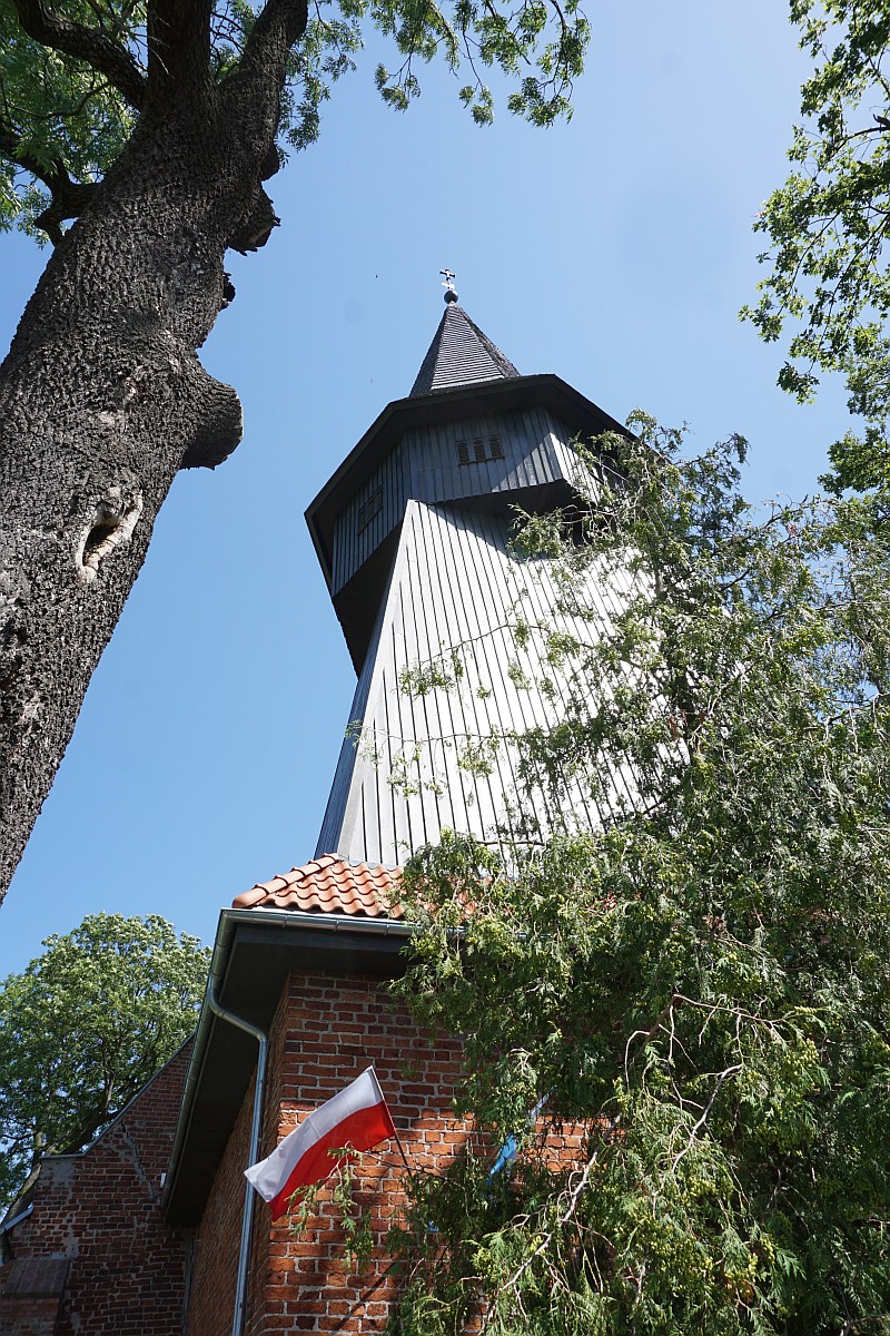 Vor drei Wochen traf ich den im nächsten Monat 91 Jahre alt werdenden Prof. Andrzej Januszajtis anläßlich der "Tage der offenen Tür" im Trutenauer Rexin-/Ringe-Vorlaubenhaus. Wir kamen auf das Thema Ordenskirchen zu sprechen, und er sagte mir, Renovierung und Turmwiedererrichtung einer dieser Niederungskirchen sei nun abgeschlossen. Daraufhin nahm ich mir vor, die Kirche bei nächstbester Gelegenheit zu besuchen und ein paar Fotos zu machen.