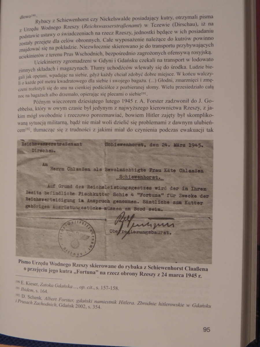 Anhang 24577Anhang 24578Anläßlich meines Besuchs in Danzig vom 30.5. - 3.6.2018 mit meinen 3 Söhnen fand in Schiewenhorst ein Treffen mit Waldemar Nocny und dem Wettermann Ryszard Klos statt. In meinem Album sind 15 Bilder und der Reisebericht zum Nachlesen veröffentlicht. Wir haben uns 2 Stunden intensiv ausgetauscht, ich konnte ihm vieles aus der Erinnerung sagen, und alte Fotos ihm auch noch geben. Davon sind welche veröffentlicht. Man hat mir einige Kopien aus dem Buch geschickt, aber ich kann sie ja nicht lesen. Die Übersetzung ist wahrscheinlich auch lückenhaft, z. B. einen Fischer Herbert Claaßen hats nicht gegeben, wohl aber meinen Vater Kurt Claaßen.