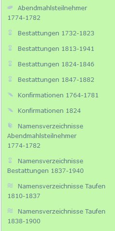 bei archion fnden sich Dokumente zu den folgenden grün hinterlegten Registern: