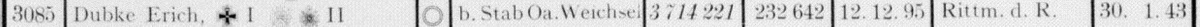 3. Auch der Rittmeister Dubke lässt sich für mich nicht eineindeutig zuordnen. Es zumindest ein älteres und ein jüngeres Danziger Haus Dieses Namens. Somit ist für mich auch nicht eindeutig, ob der SS-Sturmbannführer Erich DUBKE zuzuordnen ist.