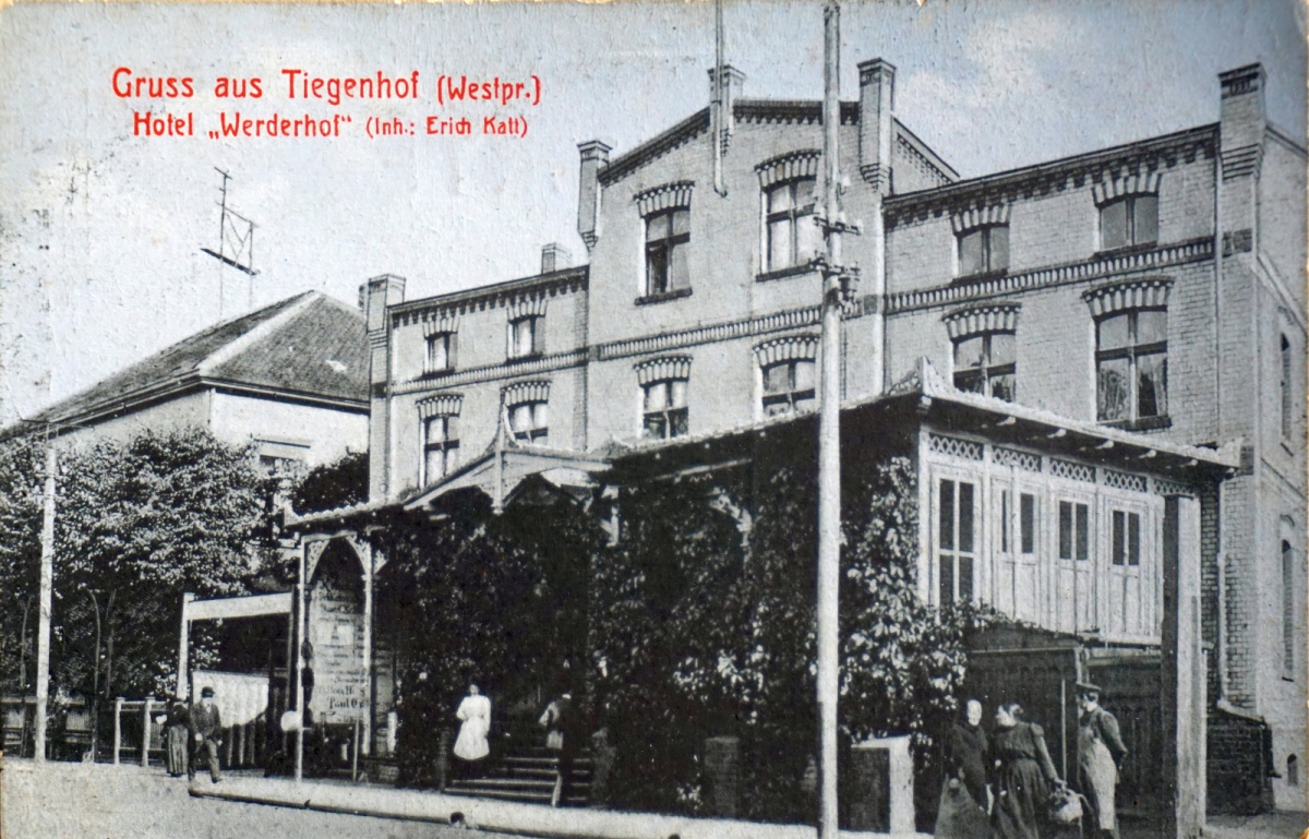 das Gebäude des früheren Hotels Werderhof (Inhaber Erich Katt) hat den Krieg als eines der ganz wenigen Häuser fast unbeschädigt überstanden und sieht heute praktisch so aus wie vor hundert Jahren. Wann es gebaut wurde kann ich nicht sagen, aber hier siehst Du eine Ansichtskarte, die von Gästen des Hotels am 06.10.1916 verschickt wurden. Links neben dem Werderhof befand sich das Hotel Sagert das aber bereits 1933 abbrannte.