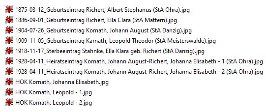 Diese (dürftigen) Informationsquellen bilden die Grundlage meines Stammbaums und einiger Verwandten (ca. 147 Namen).
