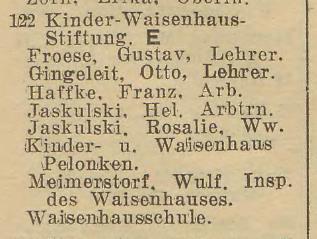 Hier im AB 1935 das Kinder-und Waisenaus in der Polenkersztr 122: Anhang 18062 .