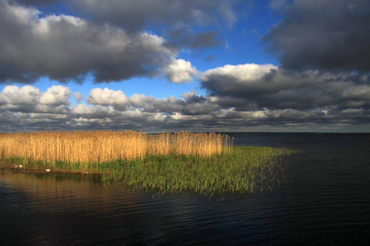 am Nachmittag des 1. Mai unternahmen wir eine kleine Tour auf der Nehrung bis nach Bodenwinkel. Und wie immer wenn wir dort sind, legten wir auch einen Halt am Hafen ein. Die Temperaturen waren recht frisch in den letzten Tagen und der frische Wind ließ uns frösteln. Trotzdem ließen wir unseren Blick über das weite Haff schweifen, rüber zu den Elbinger Höhen. Eine klare Sicht schuf wunderbare Kontraste zwischen Haff, Himmel und Wolken.