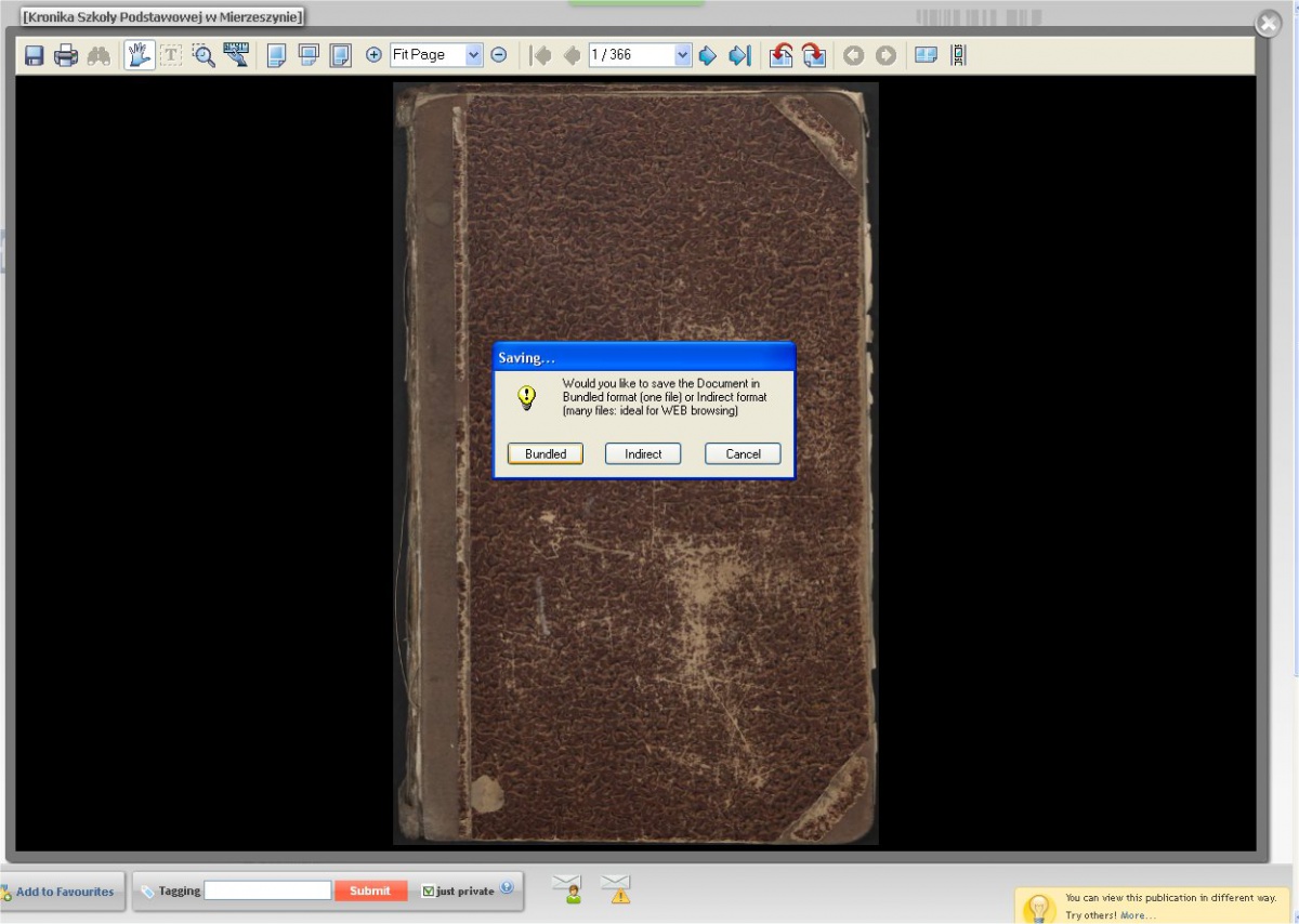 Bei der Auswahl 'indirect' erfolgt die Speicherung in vielen kleinen Einzeldateien - mindestens so viele, wie das Buch Seiten hat - daher in einem eigenen Unterverzeichnis speichern.
