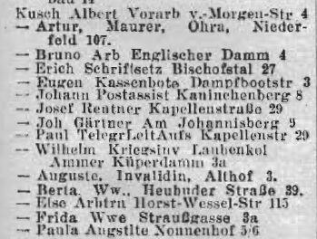 Meine Mutti, MONIKA geb. KUSCH, wuchs dort mit ihren 2 Geschwister in einem 2 Fam. Haus mit der Hausnummer 107 auf. Ihr Vater Artur Kusch, war Maurer, die Mutter, Gertrud Kusch geb. Rogotzki (weiß leider nicht, was sie beruflich machte)